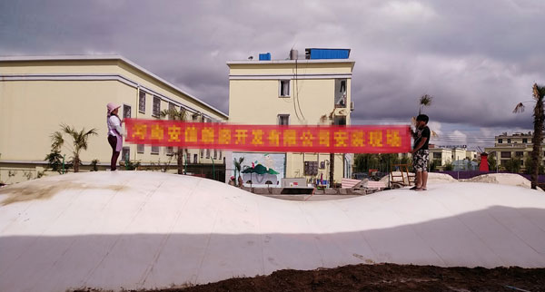 弹跳云乐园在结构设计上不同与普通充气蹦床,是永久固定在地面上的。尺寸大小可以根据场地定制,不惧大风,经营管理起来更方便。弹跳云乐园里面属于全密闭空间,风机充完气之后,不用再持续送风,当气压不足的时候,它会自动去补气,非常方便。另外它对土地的要求也很低,不管是硬土地还是沙土地,都能搭建。