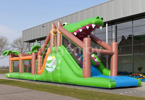 An inflatable course, the theme of the crocodile, 17 meters long fully enclosed nets. Between net, slide, inflatable tunnel, they will be more tricky to reach the end of their sentence. Thrill guaranteed!