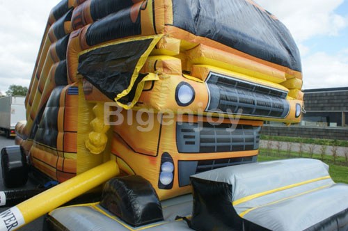 Inflatable truck to really attractive colors; The mouth of the inflatable structure opens and closes alternately on one side the kids ride in the mouth and they come down the other side.